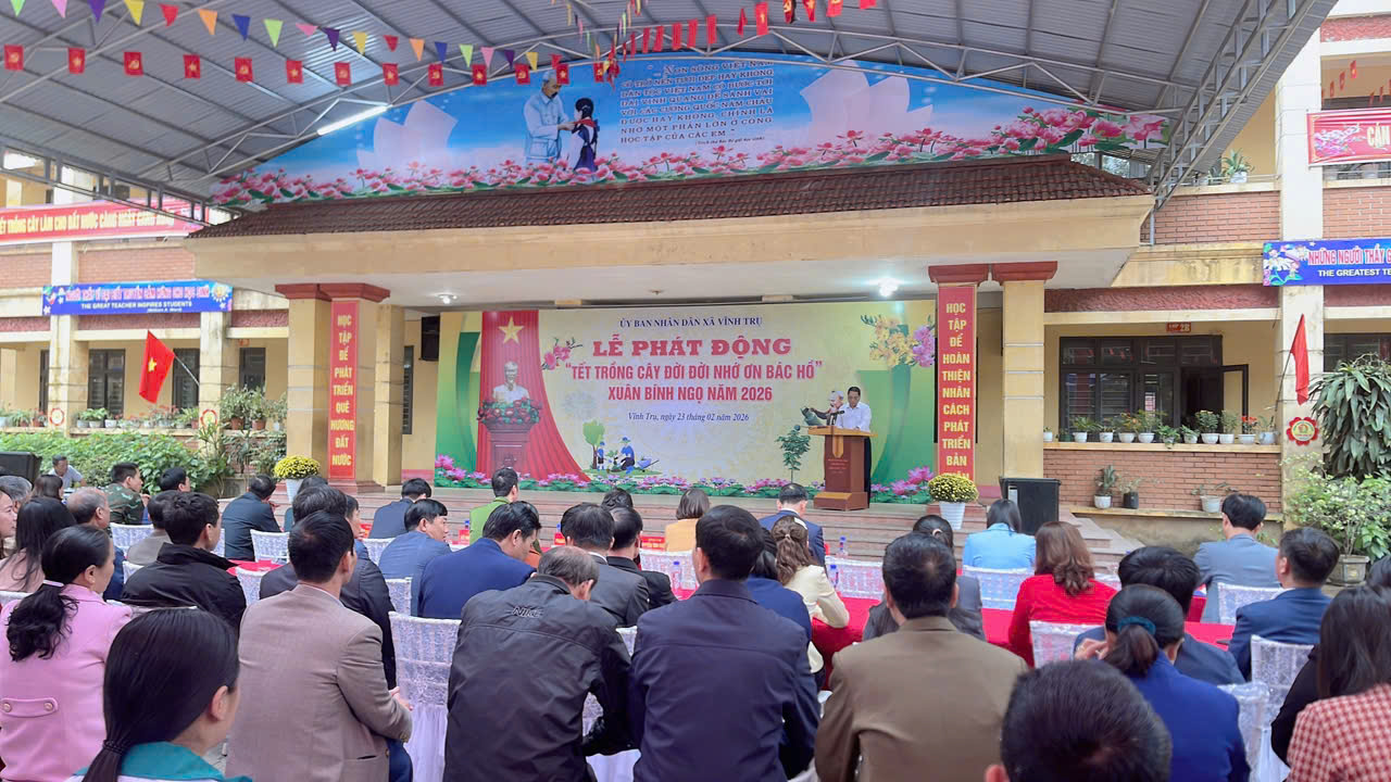 Hưởng ứng phong trào “Tết trồng cây đời đời nhớ ơn Bác Hồ”. Trong không khí rộn ràng của Xuân Bính Ngọ 2026,sáng 23/2/2026 UBND xã Vĩnh Trụ tổ chức lễ phát động trồng cây tại Trường Tiểu học Nhân Khang.