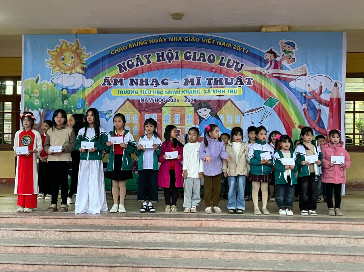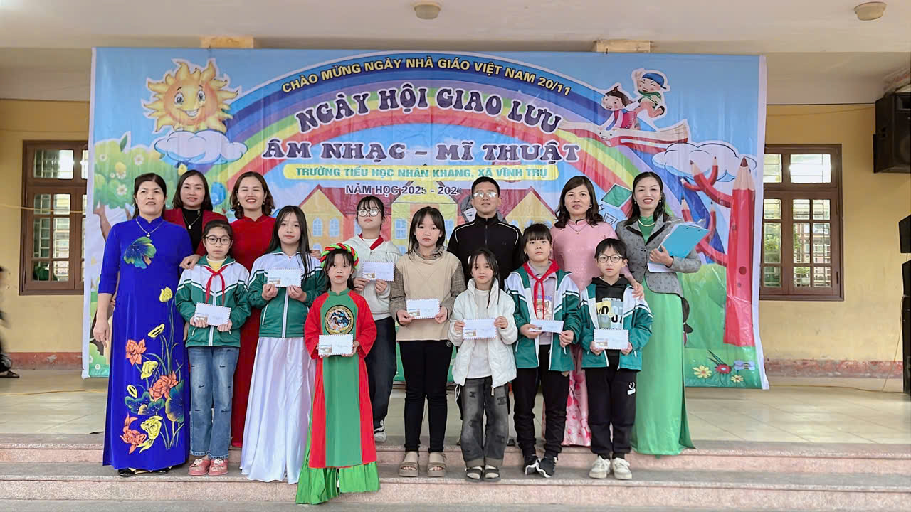 Để giáo dục lòng tự hào về truyền thống văn hoá của quê hương, giáo dục lòng yêu mến đối với những bài hát về thầy cô mái trường, những làn điệu dân ca và dành những lời ca tiếng hát của mình để bày tỏ tình cảm, lòng biết ơn đối với các thầy giáo, cô giáo, chào mừng kỉ niệm 43 năm Ngày Nhà giáo Việt Nam 20/11/1982 – 20/11/2025. Hôm nay được sự nhất tríí của ban lãnh đạo nhà trường chiều ngày 19/11/2025 Liên đội trường Tiểu học Nhân Khang long trọng tổ chức Giao lưu Ngày hội Âm nhạc – Mỹ thuật” cấp trường năm học 2025- 2026.