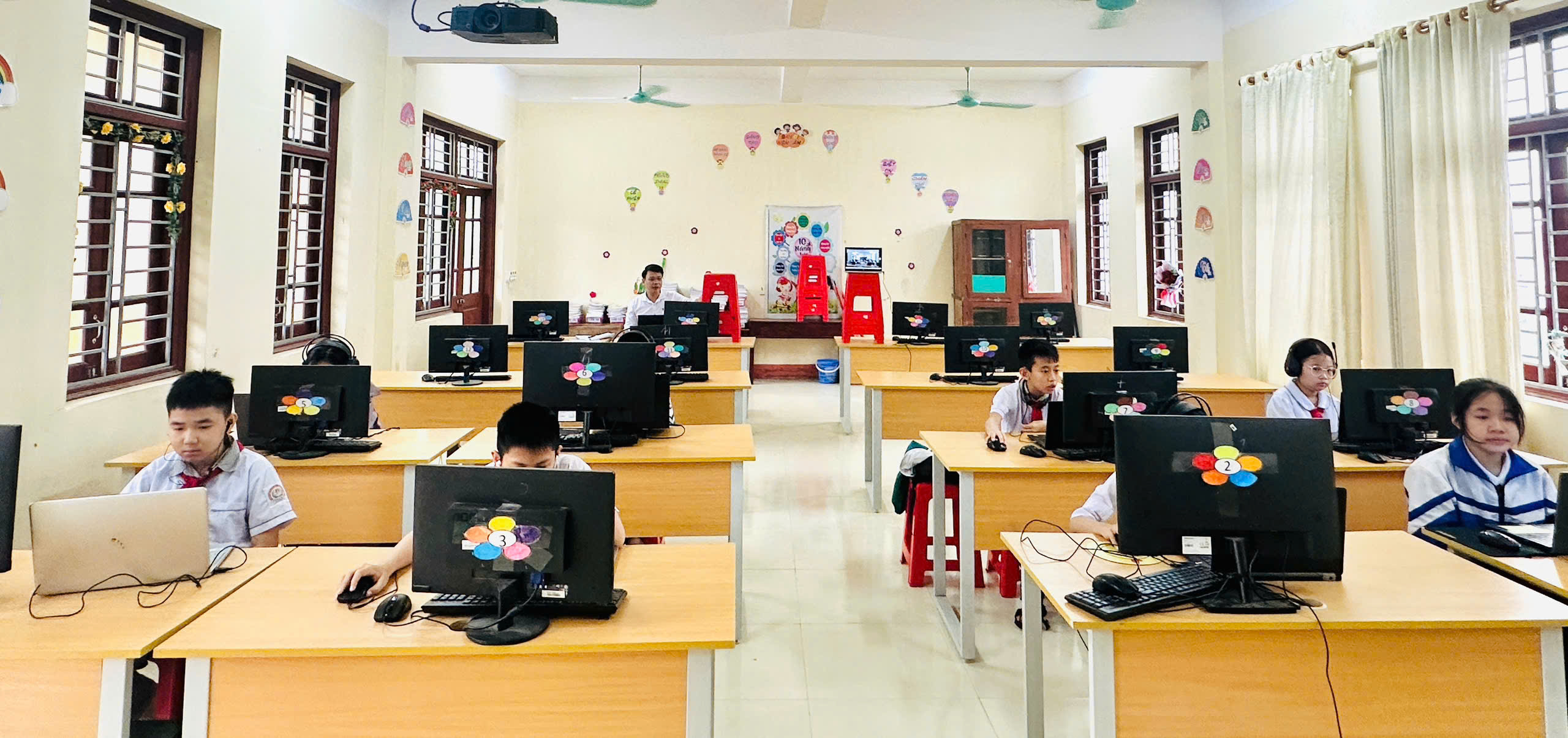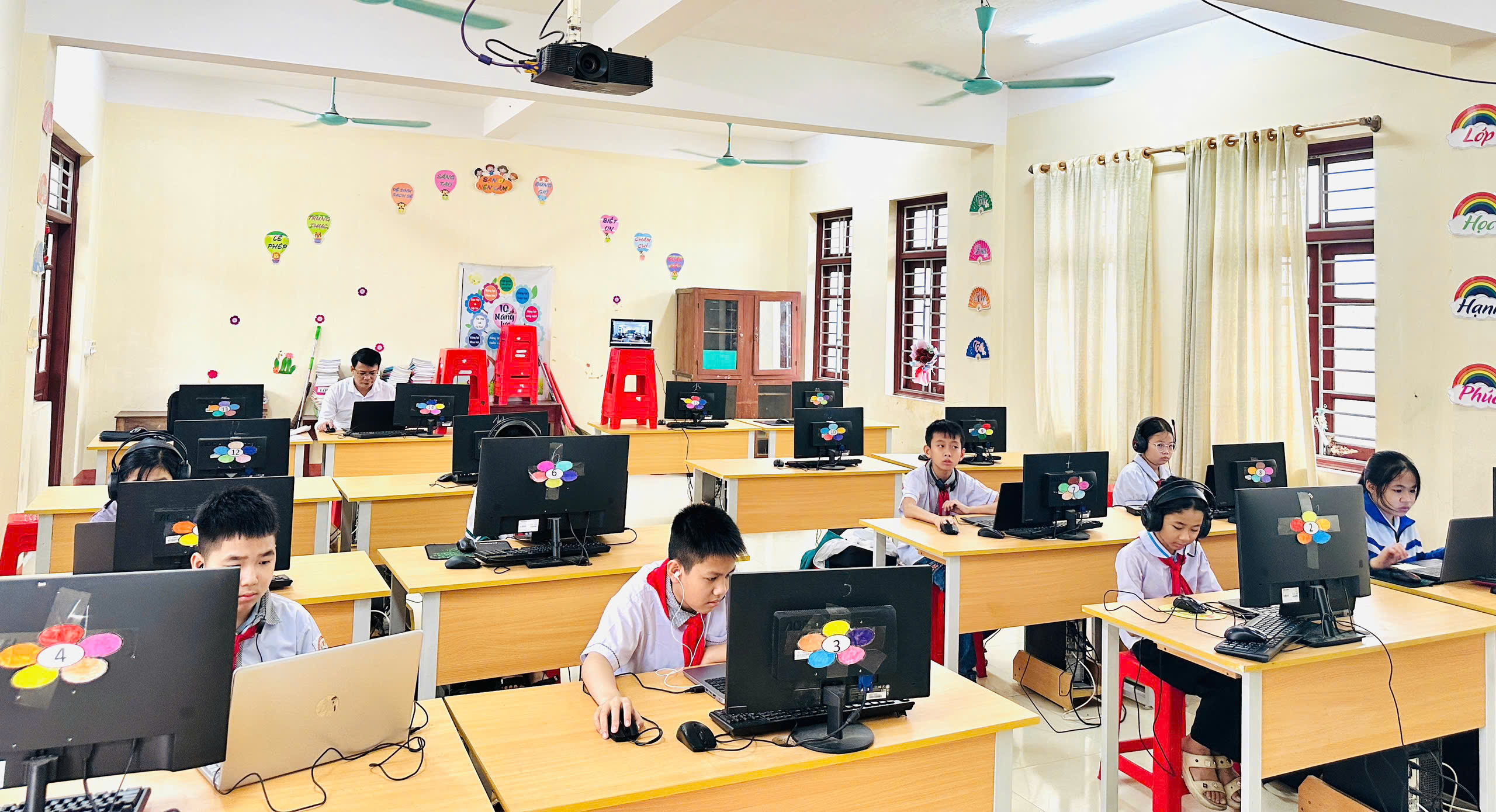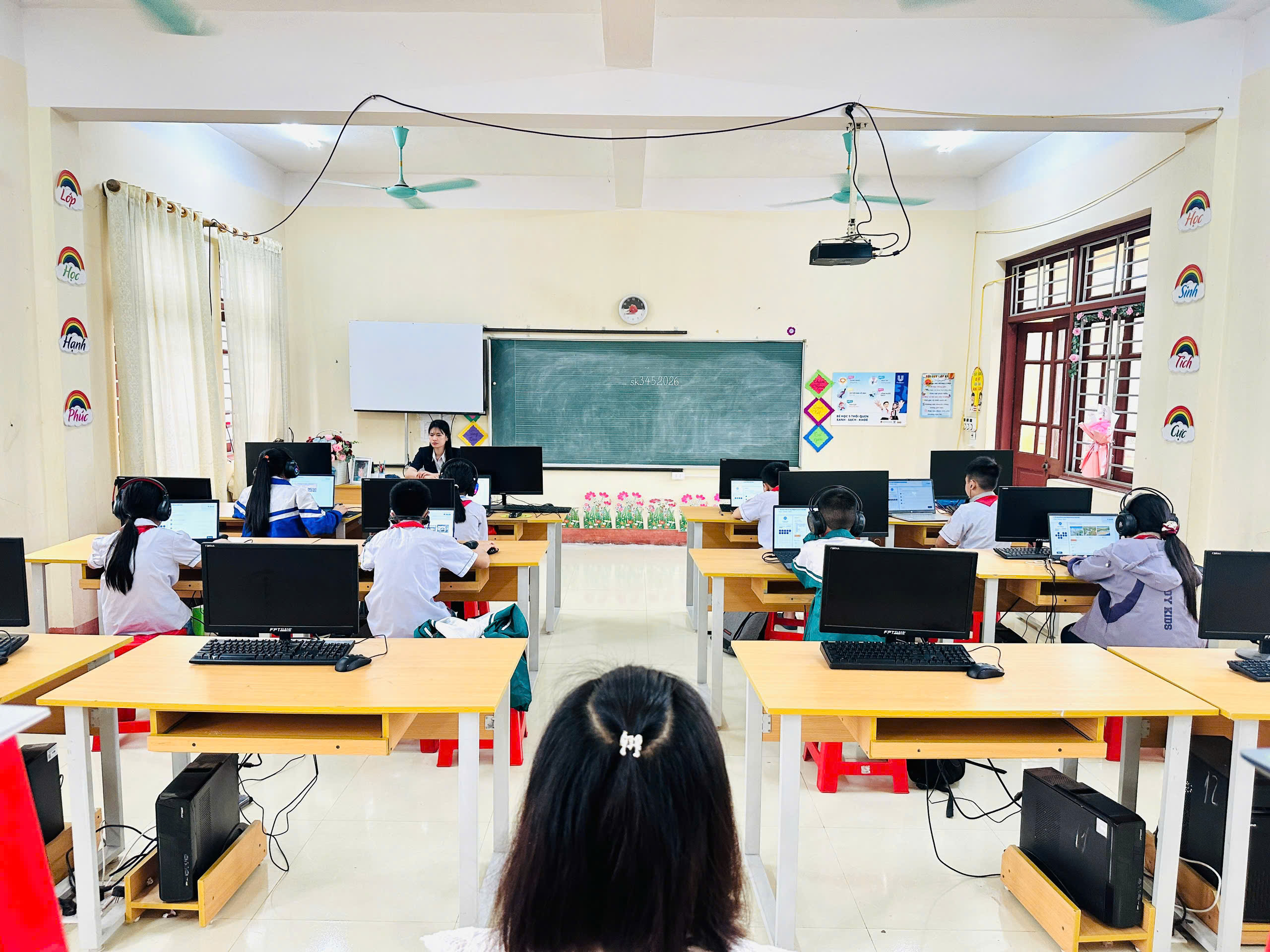 Tham gia vòng thi có 8/8 học sinh tiêu biểu đến từ các trường tiểu học trong xã, đều được tuyển chọn và bồi dưỡng kỹ lưỡng từ cấp trường. Các em thực hiện phần thi trực tuyến trên máy tính, thể hiện kiến thức vững vàng và kỹ năng tiếng Anh tốt.