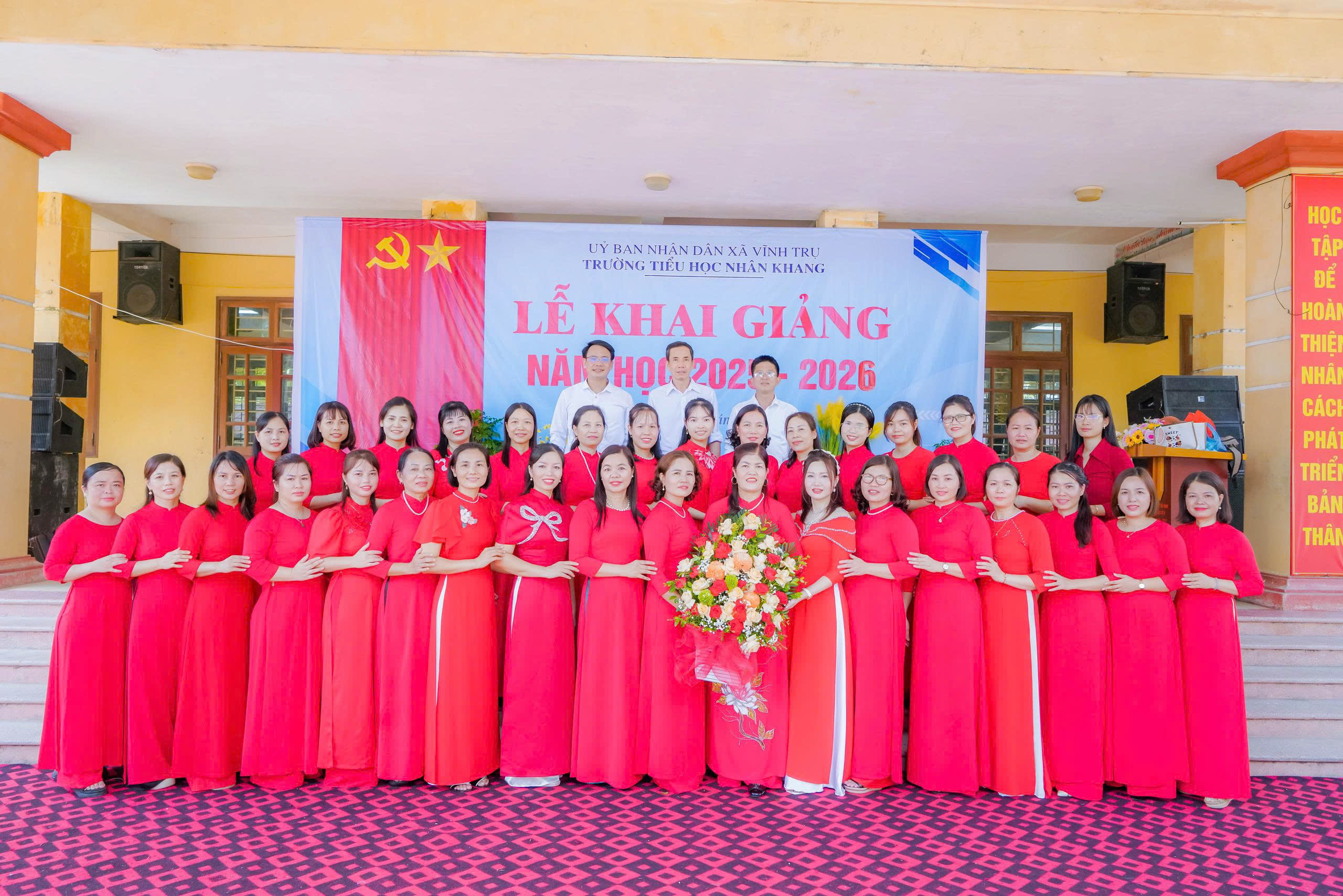 Mùa hè rực rỡ đã trôi qua, một mùa thu mới trong lành, dịu mát đã trở về. Mùa thu với những sợ kiện trọng đại: cả nước tưng bừng kỉ niệm 80 năm Cách mạng tháng 8 và Quốc khánh 2-9 . Trong không khí tươi vui, sôi nổi tràn đầy sức sống của mùa thu lịch sử , sáng 5/9/2025, trường Tiểu học Nhân Khang long trong tổ chức lễ khai giảng năm học 2025-2026. Về dự Lễ khai giảng năm học mới với thầy và trò nhà trường có ông Đỗ Văn Minh – Bí thư Đảng uỷ-Chủ tịch UBND xã; ông Nguyễn Văn Vân – chỉ huy trưởng Ban chỉ huy quân sự xã; ông Nguyễn Văn Bình – Giám đốc HTX nông nghiệp. Các ông, bà trưởng các ban, ngành, đoàn thể, bí thư chi bộ, trưởng thôn; các bậc cha mẹ học sinh. Về phía nhà trường, Cô giáo Nguyễn Thị Liễu – Hiệu trưởng trường; các thầy cô giáo là Phó Hiệu trưởng và giáo viên, nhân viên nhà trường. Và đặc biệt, hơn 800 em học sinh Trường tiểu học Nhân Khang đã tham gia buổi lễ trọng đại này. Buổi lễ khai giảng đã thành công tốt đẹp. Tiếng trống trường đã điểm, năm học mới bắt đầu, thầy và trò trường Tiểu học xã Nhân Khang hân hoan cùng nhau bước vào một chặng tiếp theo của hành trình khám phá tri thức để viết tiếp truyền thống “Dạy tốt – Học tốt”, tô điểm thêm truyền thống của mái trường thân yêu.